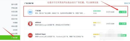 4、安裝“廣告攔截”,攔截其他網(wǎng)站的廣告,如圖