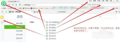 3、設(shè)置界面,將一些不需要的界面顯示都取消掉,具體如圖: