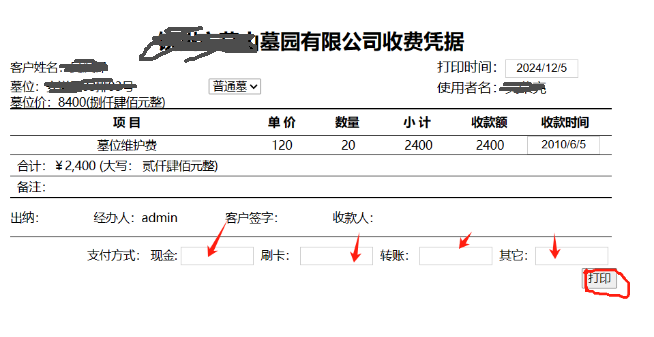 陵園系統(tǒng)V3.0單條和多條收費記錄“收費收據(jù)打印”若干問題說明
