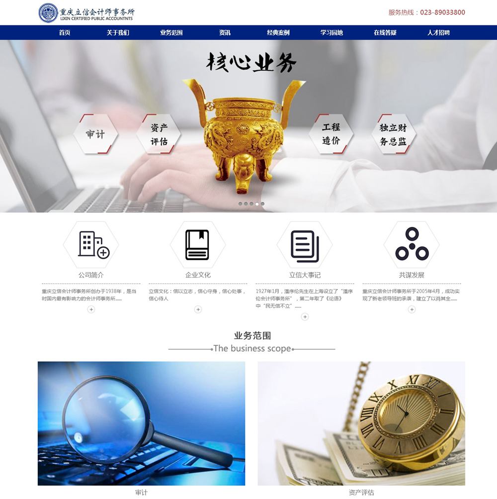 重慶立信會計師事務(wù)所創(chuàng)辦于1938年,是當(dāng)時國內(nèi)最具有影響力的會計師事務(wù)所之一,50年代初期因其歷史原因停辦。20世紀(jì)80年代,中國迎來了經(jīng)濟體制改革的春天,隨著對外改革開放步伐的加快,立信學(xué)子為完成潘序倫老先生的遺愿,于1992年復(fù)辦重慶立信會計師事務(wù)所。經(jīng)過20多年的艱苦創(chuàng)業(yè),事務(wù)所的各項工作日趨成熟,工作業(yè)績蒸蒸日上,在行業(yè)內(nèi)有口皆碑,事務(wù)所的規(guī)模逐步壯大,聲名遠播,得到了社會的廣泛認(rèn)可。立信人一直秉承潘老“信以立志、信以守身、信以處事、信以待人”的經(jīng)典校訓(xùn),堅持不懈地倡導(dǎo)執(zhí)業(yè)質(zhì)量第一和務(wù)實的理念,并以此為準(zhǔn)繩,為客戶提供真實、合法的會計、審計及其他咨詢服務(wù)。