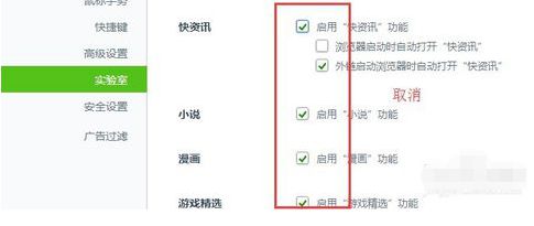 1、通過瀏覽器選項(xiàng)設(shè)置,設(shè)置其中的:實(shí)驗(yàn)室,將不需要的推薦都取消勾選,如圖所示: